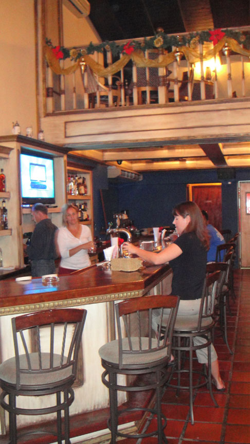 Amadeus Restaurant in Aruba is a new find for me. My wife and I joined friends there for a very nice dinner out last night. Upon entering, you’ll find an appealing bar with tables in the distance as well as a staircase leading to a balcony seating area. Here’s a view of the bar.