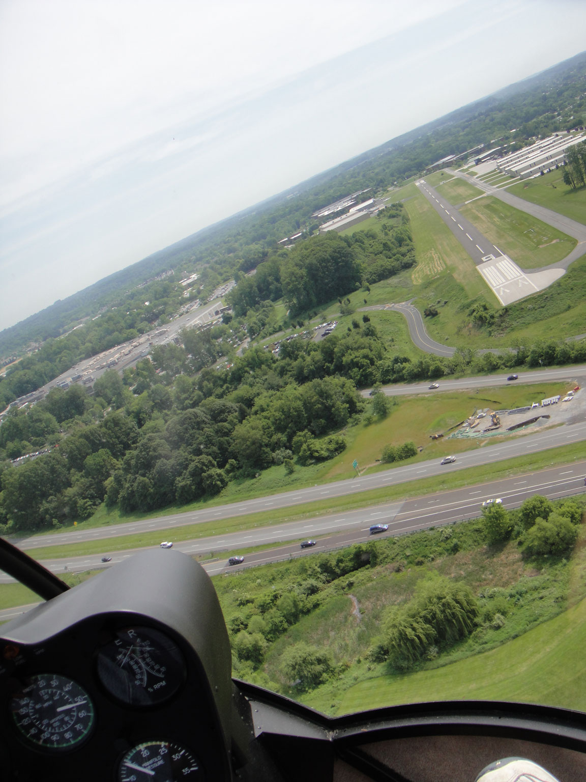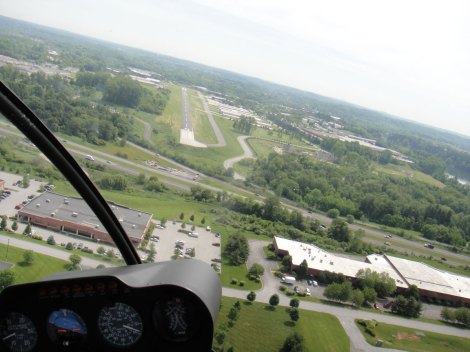 If you remember a few blog posts back I had the pleasure of a ride and some basic training in the Robinson R44 Raven II helicopter. Well, today, I was fortunate enough to enjoy lesson Number 2. What a blast! We took off, headed south, and focused on maintaining course. Then came some climbs and descents, a bit of practice turning while remaining on station, and then a few laps around the pattern. I’m starting to get the feel for the cyclic, which is a fine touch indeed. At any rate, here’s a shot looking straight ahead as we roll in to Runway 9 on final approach.