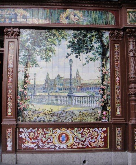 Of course Spain is famous for it’s tile work. I came across too many examples to include them all. However, one building, a restaurant if I recall correctly, truly stood above the rest. This place featured iconic scenes from each of Spain’s regions portrayed in beautiful tiles all along the facade. Here are five of them. Can you guess the locales they depict?