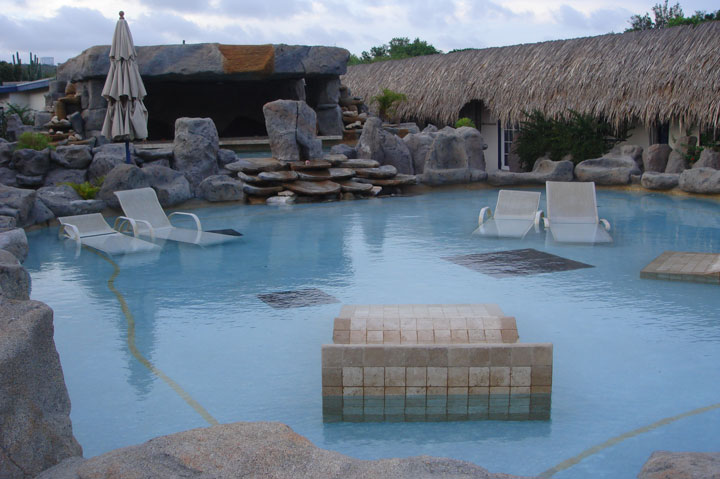 That’s a float up bar at the far end. Don’t want to be thirsty out there in the Aruban sunshine. The rooms are arranged around these pools giving you direct and immediate access to the water. A typical room features a nice bedroom like this…