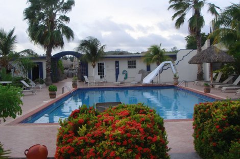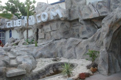 In Savaneta, Aruba, you’ll find a bed and breakfast type of establishment called Club Arias. It’s easy to find. If you’re headed south from the airport, continue on the main road until you see this faux stone wall.