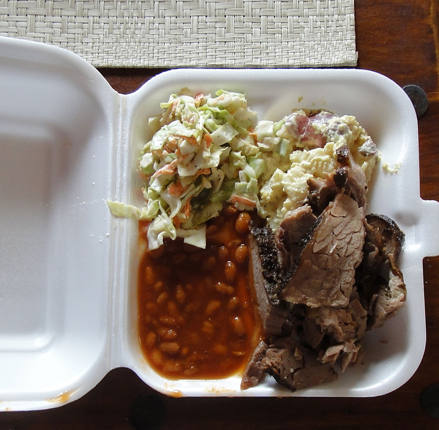 During my last visit to Aruba, the Hollywood Smokehouse and Diner had just opened in my favorite town of San Nicolaas. Well, upon arrival, I made plans to stop in for some great food and, man, was I well-satisfied. Mike, the owner, was there. He updated me on new things on the island before setting me up with a couple of brisket platters for take away. And here’s the sight to behold: