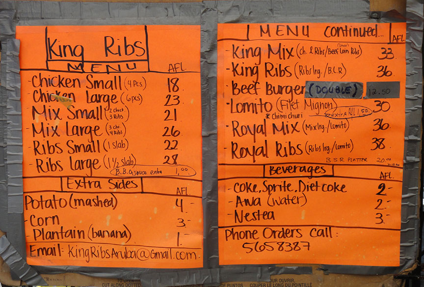 King Ribs is what the name implies, a king of ribs in Oranjestaad, Aruba. I’ve wanted to get to this place for a long time, and finally did yesterday for the Sunday BBQ fest that happens each week all across the island. Here’s a look at the joint from street level.