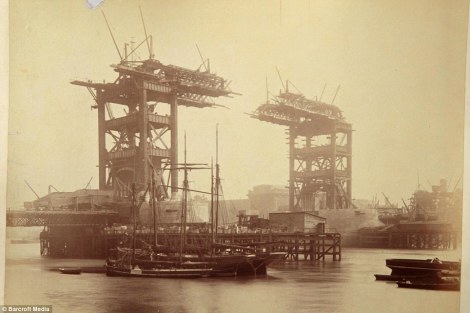 A good friend (Thanks, Dr. Pete!) sent me these photos from London’s Tower Bridge, showing it under construction in 1892. Impressive.