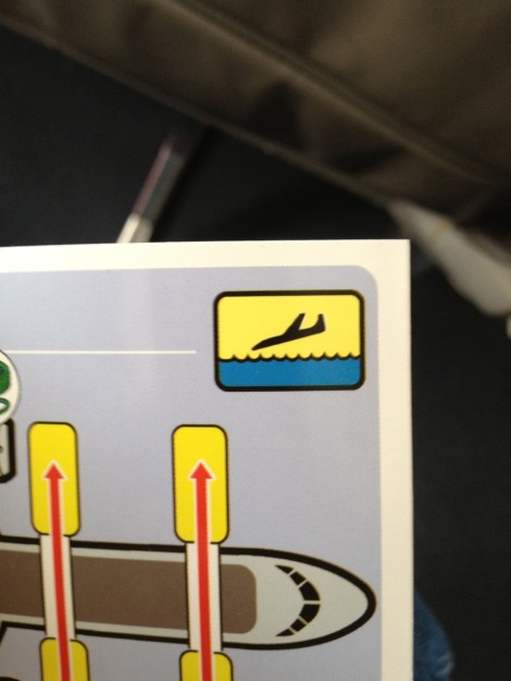 I don’t know. I think they need some more words on these cards. You see the graphic of the airplane pointing toward the water. Then there’s the red arrows indicating how to exit the plane onto the yellow rafts. But, who knows what all these things are? Could be slip and slides for the party crowd. Of course, the graphics are supposed to avoid the need for multiple translations. Either way, words might soon be a thing of the past and we’ll all write in little pictures like children. Some places do this already.