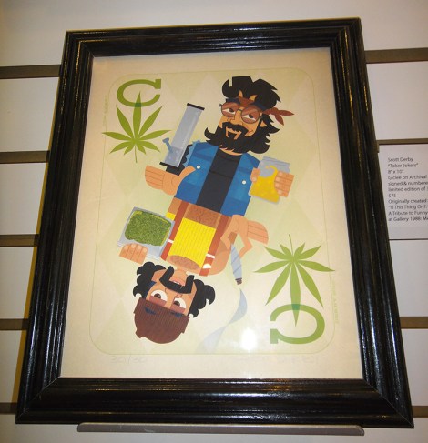 Scott Derby is one fantastic illustrator. He also creates his own pop-art works that key into cultural icons many of you will recognize. Check out this one derived from Cheech and Chong’s movie, Up In Smoke.