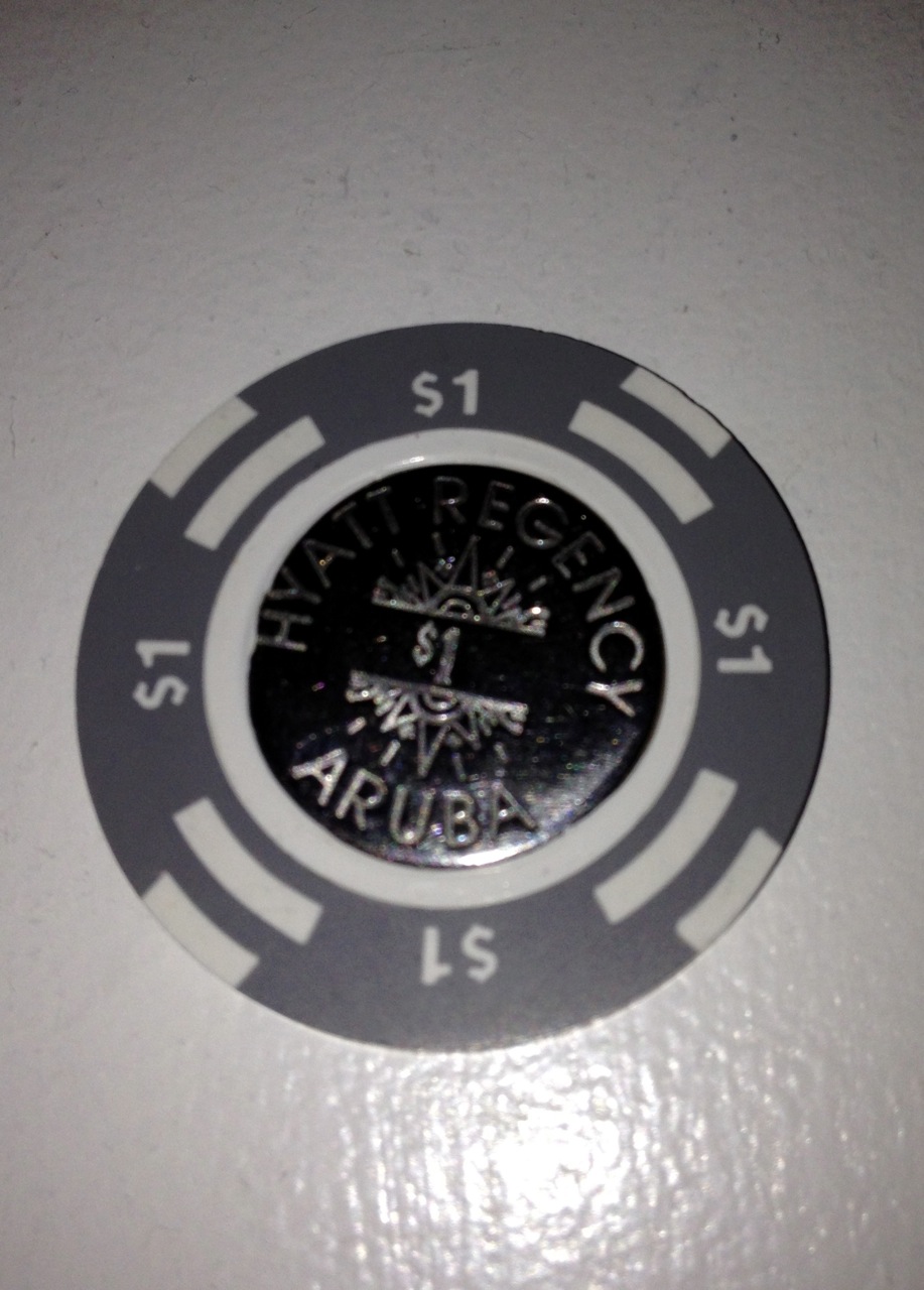 While Hurricane Sandy passed by, I decided it was a good time to do some organization of my files. While working through various drawers, cabinets, and boxes, I discovered a few trinkets. One of them was this casino chip from the Hyatt in Aruba.