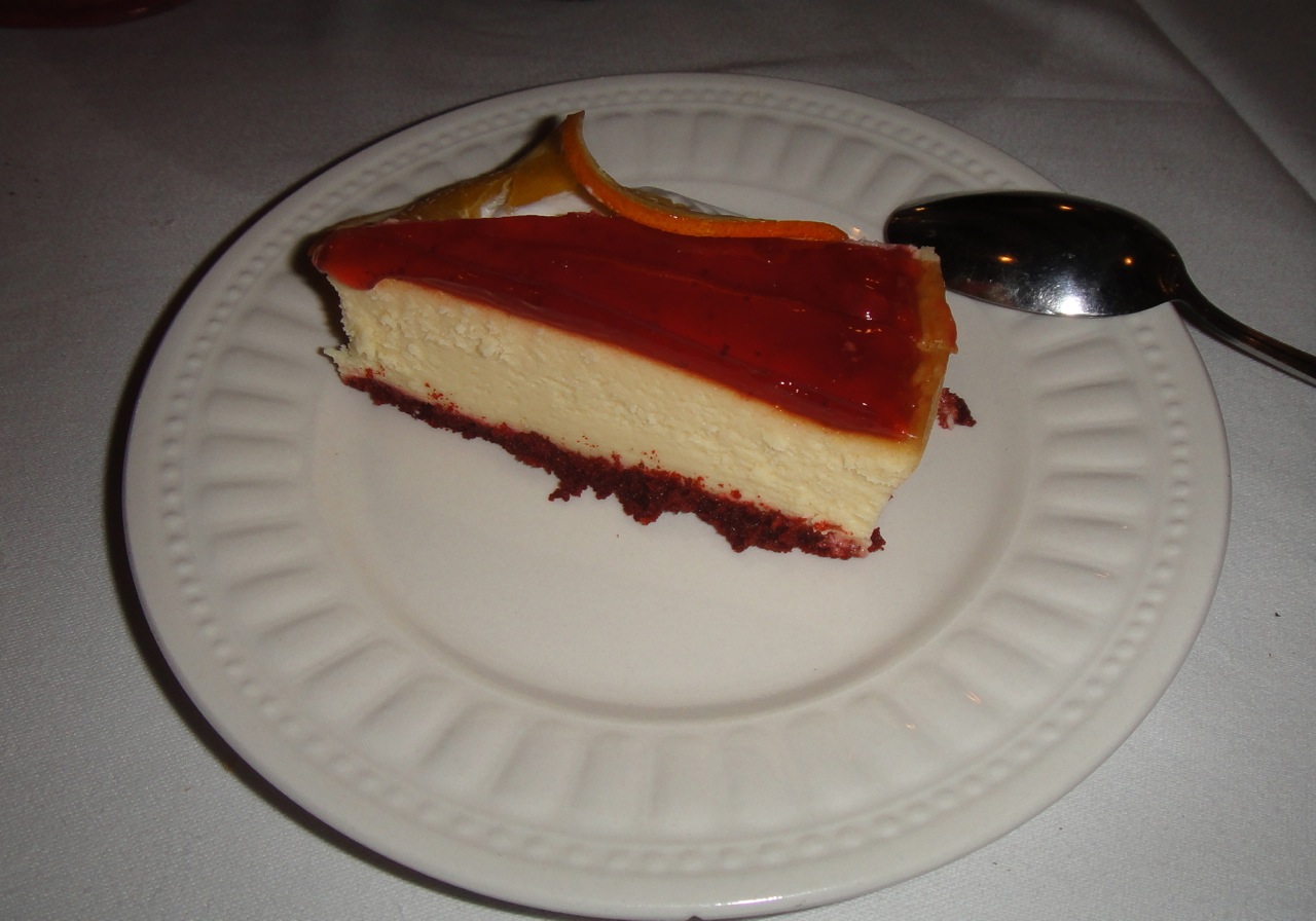 Among the other high points were the vegetables, which were cooked just enough. (Sometimes in Aruba, the veggies come out bland. These were still crunch and full of flavor. I like my veggies so these were particularly tasty.) Finally, a slice of cheesecake for dessert: