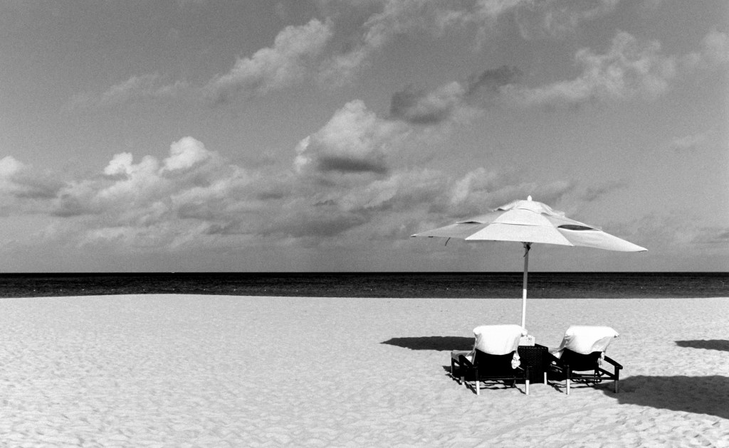 Here’s a view of Eagle Beach, Aruba, with a table for two.