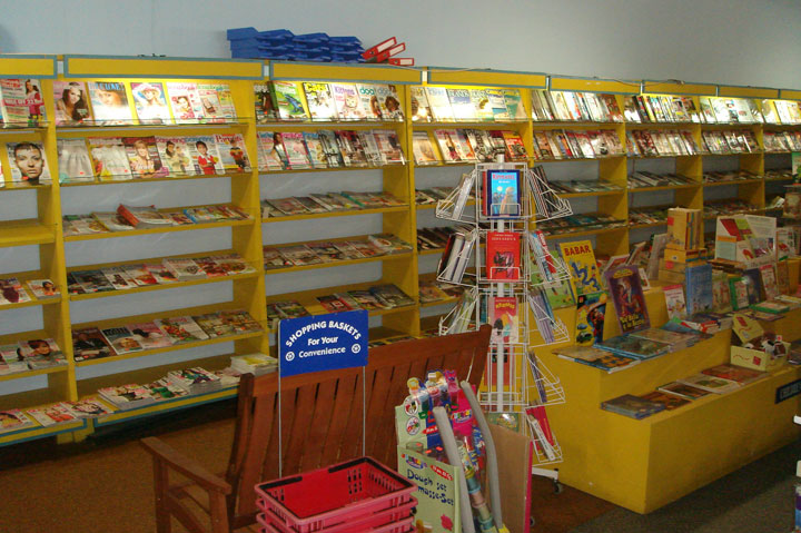 The photo above shows the ample parking and fresh paint on the building. Inside you’ll find a wide selection of magazines, books, greeting cards, and craft supplies. There is also a copy center.