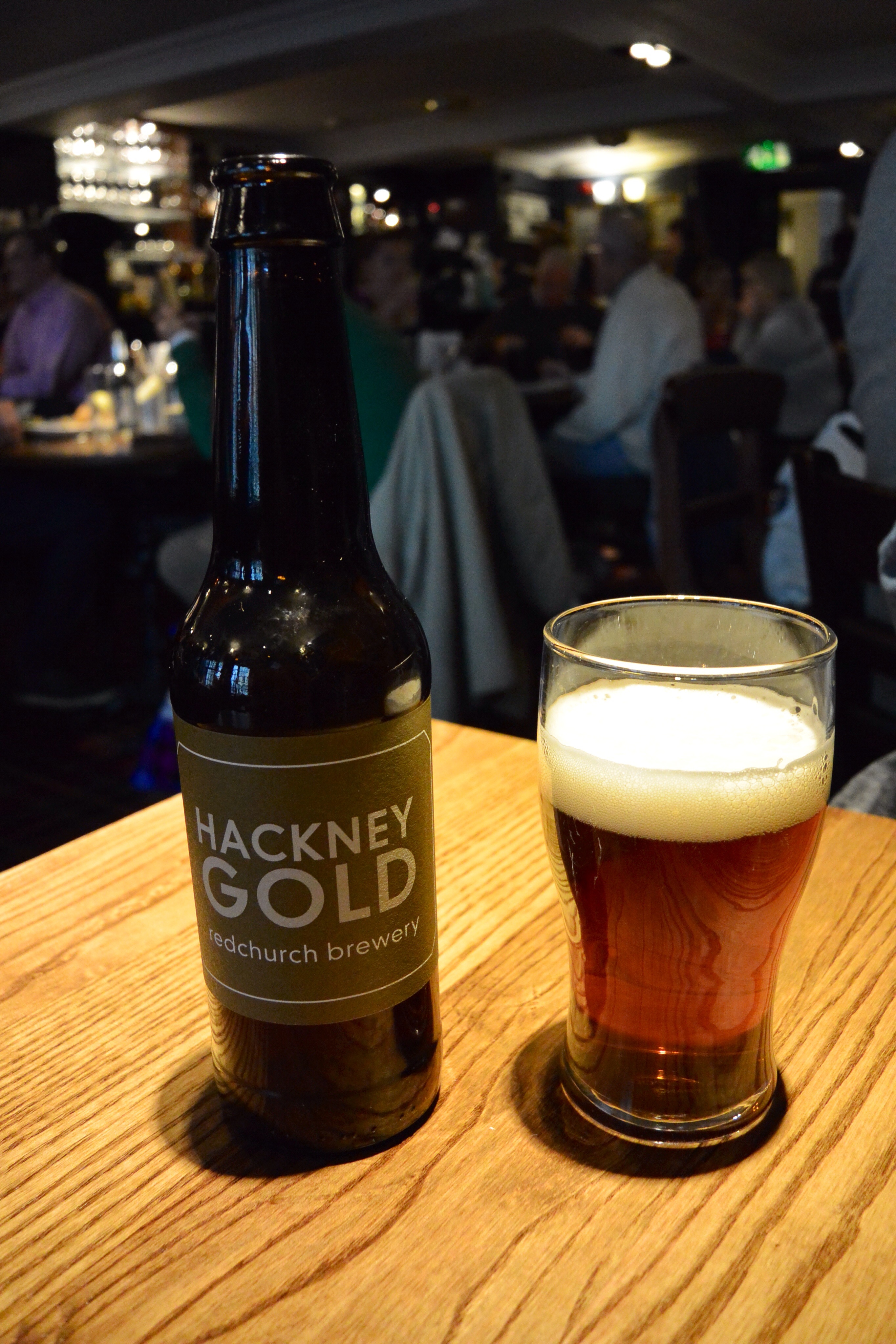 Hackney Gold, one of the many beers on tap and in the bottle at Deacon Brodie's Tavern, Edinburgh, Scotland.