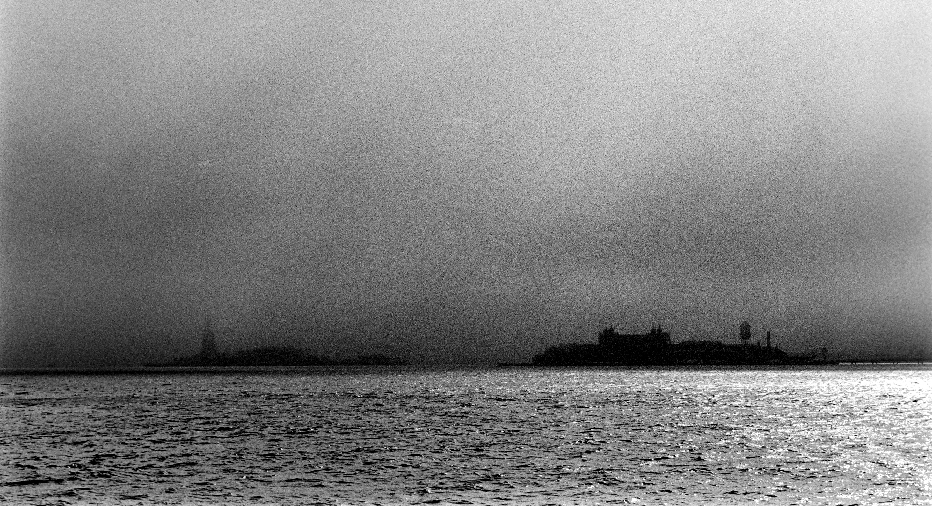 A view from southern Manhattan toward the Statue of Liberty and Ellis Island.