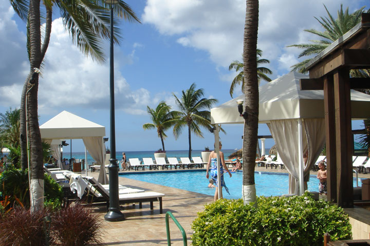 Not bad, eh? This is a great location to watch the inbound ships. They pass fairly close to the beach on their approach to Oranjestaad Harbor. Of course, you’re there with a cold beverage, maybe a good book and a snack, too. Either way, it’s hard to beat Aruba’s beachside pools.