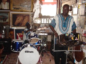 Wow! What a turnout for the official launch of my novel, An Island Away. There was only one place where this could be held, Charlie’s Bar, Main Street San Nicolaas. I want to start by thanking Charlito (aka Charles III, that is Charlie, Jr.’s son) and Mr. Speziale for making the event a huge success. The bar had to be rearranged a bit, a steel band brought in, and everyone pitched in to get things ready. By 11:00 am people were literally waiting for the bar to open, even though things weren’t scheduled to begin until 12:30. The doors opened at 11:30 and the party began. Here are a few photos: