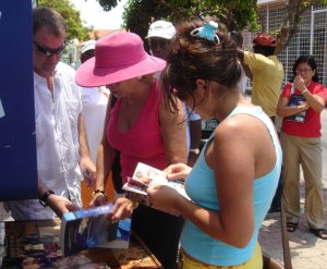 I’m signing on a table we put on Main Street so there would be room for more people in the bar. In the photo above is my friend from college and her mother. Like so many people who love Aruba, they visit the island at least once a year. Then there was this lady, who reminded me of a character from the book, but she insists it wasn’t her.