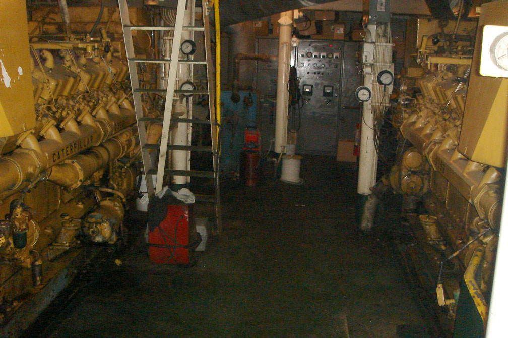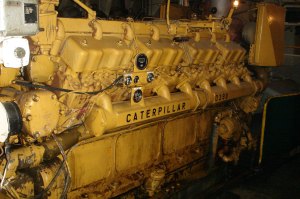 Another look at a main engine, in this case a Caterpiller D399 of 16 cylinders, developing 1,200 horsepower.