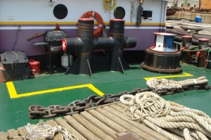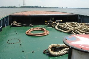 Again, notice there isn’t much space to live and work on a tugboat. Most things have the aroma of diesel or fresh paint. If two guys aren’t getting along, there’s no where to hide. I knew one captain who used to take two feuding men and toss them into the smallest room on the boat. They weren’t to come out until whatever they were arguing about was settled. If not, he’d go in there with them and settle it himself. Furthermore, things have to be maintained and repaired while underway. Spare parts are carried on the boat. Except in the case of a major breakdown, the work continues, the solutions implemented and improvised by those aboard.