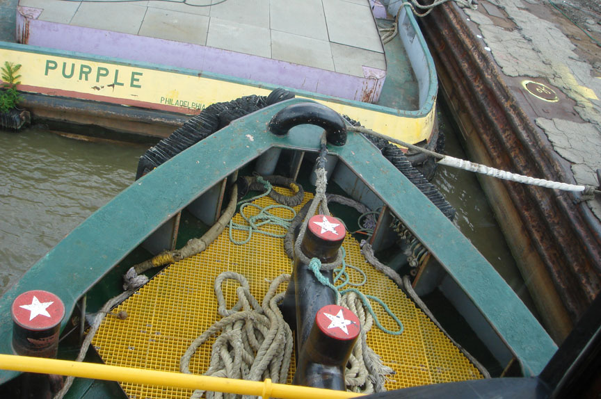The High Roller is your typical general purpose tugboat built about 40 or so years ago. Yes, when well cared for, these boats last a long time. I worked with this boat for about six years, towing barges down the Delaware River, into the Atlantic Ocean, and some other places (most times I found my way back). One thing you’ll notice is the bow fender on the front of the boat. Tugboats push as much as they pull. The fender protects both the tug and whatever it happens to be pushing against. It took me a long time to get used to the idea that you actually bump into things when you’re working on tugs as opposed to land vehicles where touching is usually a bad thing. In the center of the bow you’ll see the bull ring where a line can be passed through before leading to a pier, barge, or ship. It is made fast on the front bit by turning figure eights. That first level of deckhouse is bunkrooms and the next level is the wheelhouse. All the way at the top is another steering station used to see over the top of tall barges.