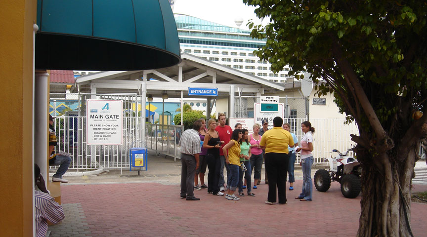 Relatives of mine love cruising and go on at least one cruise a year. One of the things they like to do is shop for jewelry and local items, as well as high end goods that may be better priced than they would find in the United States. Well, in Aruba, you have plenty of options just beyond the port where your ship docks. You’ll pass through the gate and walk down this street, headed roughly south, southeast.