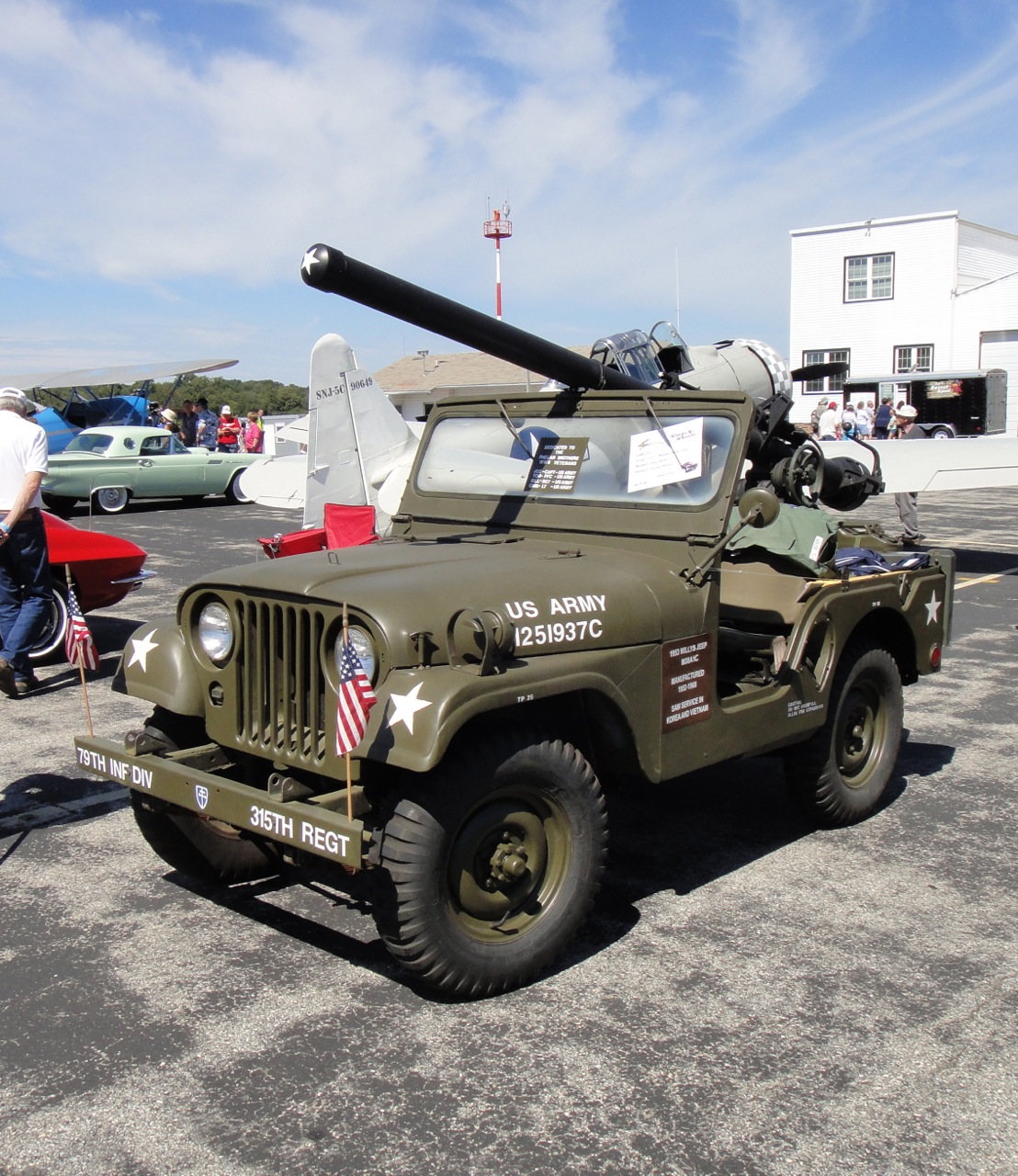 Take a Willys Jeep and mount a 106mm “recoilless rifle” on it and you have what I would call the mouse that roared. I found this example at the Wings & Wheels show at Wings Field on 7 September 2013. Take a look: