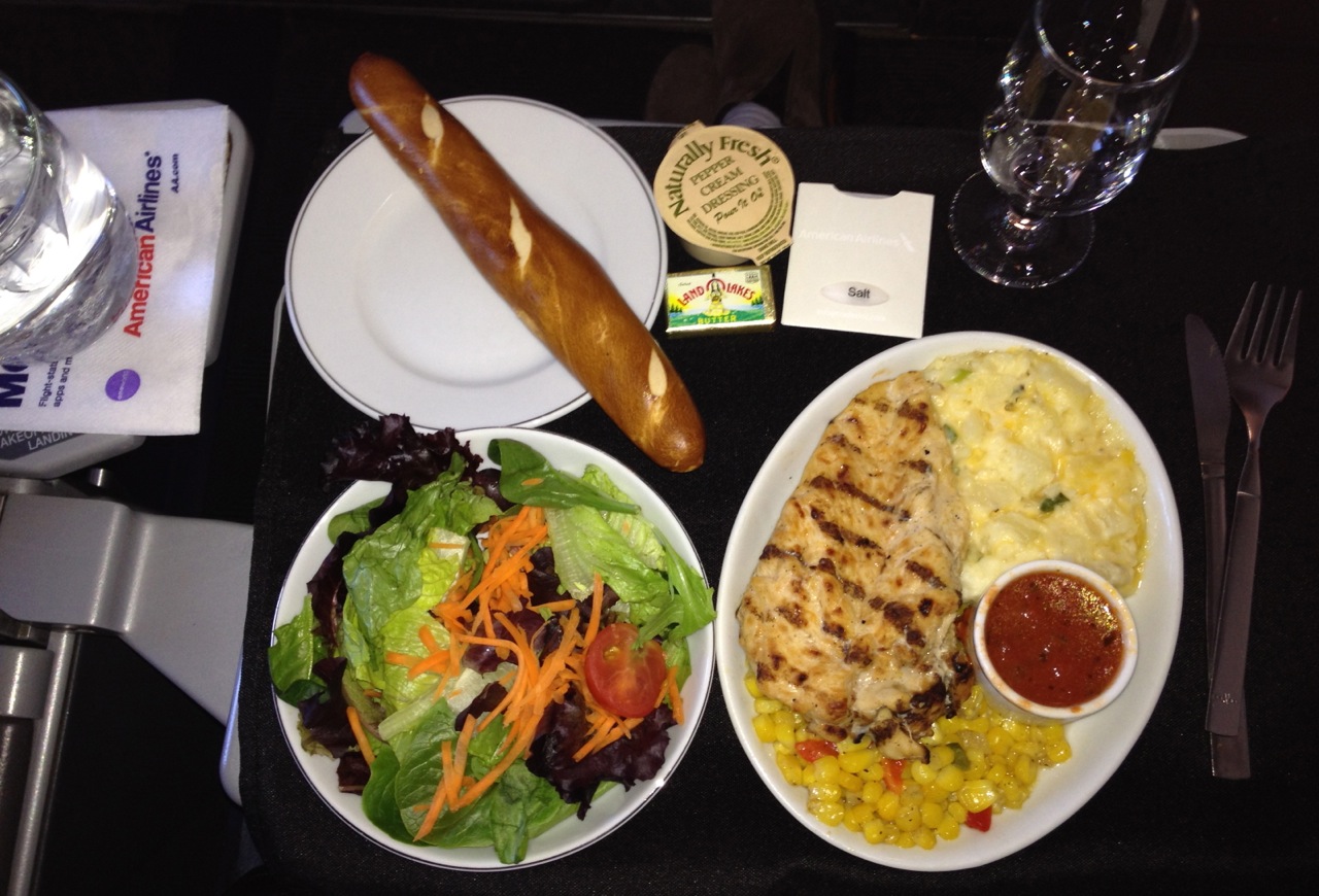 The novelty item here was the pretzel stick you see in the upper left of the frame. That salad was also very fresh, and I do like my greens with most meals. I very much like the fact that American Airlines gives me this choice. It may seem like a small thing, but it matters because it shows the airline is thinking about ways to make things better. Thanks for a friendly and safe flight.