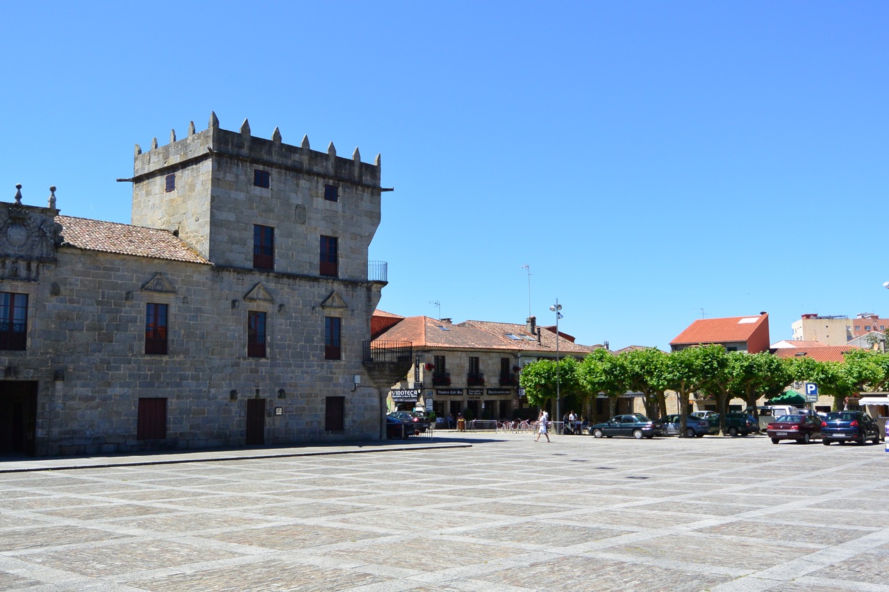 Cambados, Spain is a pleasant town on the Atlantic coast of Galicia. There is a stoic main square of stone buildings that you see here: