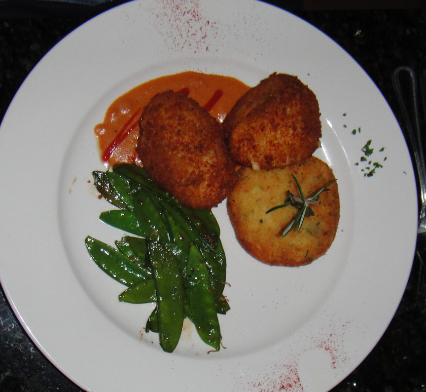 My wife likes Popi’s crab cakes and ordered them as her entree, as can be seen here: