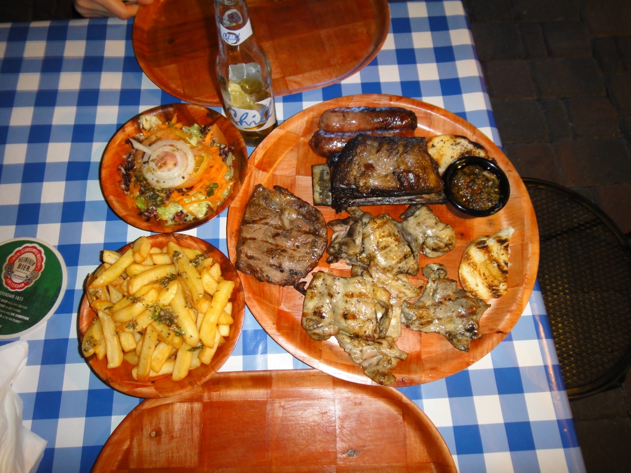 You can have a nice drink there before or after your meal. Moving on to the food… as mentioned, this is a “wood-fired grill” place, so there are some great meat options. But let’s start with our greens, namely the salad with prosciutto that you see in the next photo: