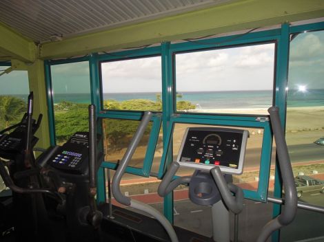 After a day of meandering about the city, what a pleasure to come back, don the swim trunks and take a dip! But, there’s more, such as a gym with a few pieces of equipment to help burn off those calories: