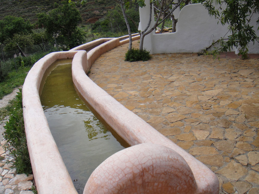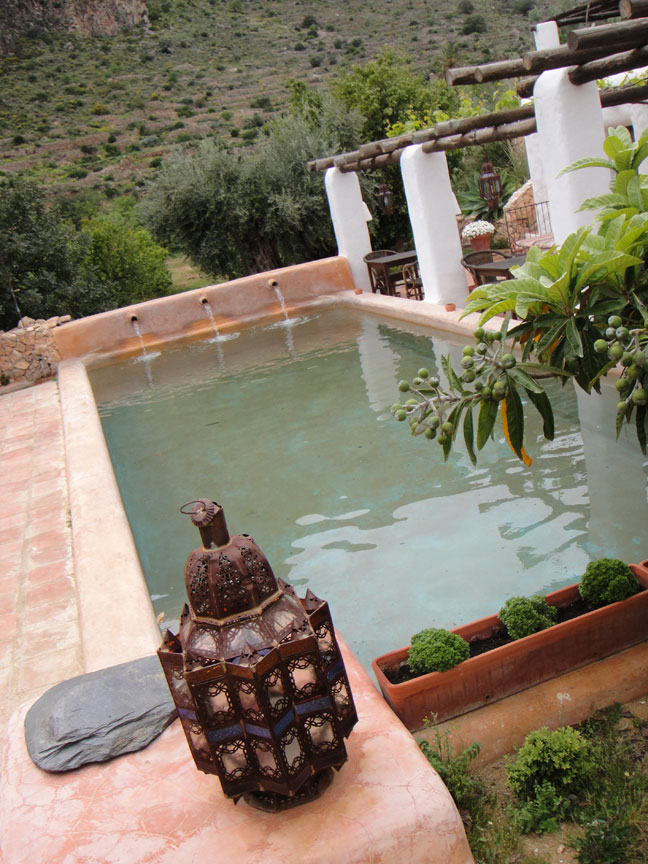 Previously, I posted about the restaurant at the Hotel and Spa known as Túnel de Hada. Now, let’s focus on the hotel. (Sadly, I did not avail myself of any spa treatments. An error I will have to correct some day.) Jerte is where this hotel is located, a small town in the middle of a green valley loaded with cherry orchards. There’s a small river running through it. More on that later. Here’s a view of the hotel from the rear. The front is on a very narrow street in town.