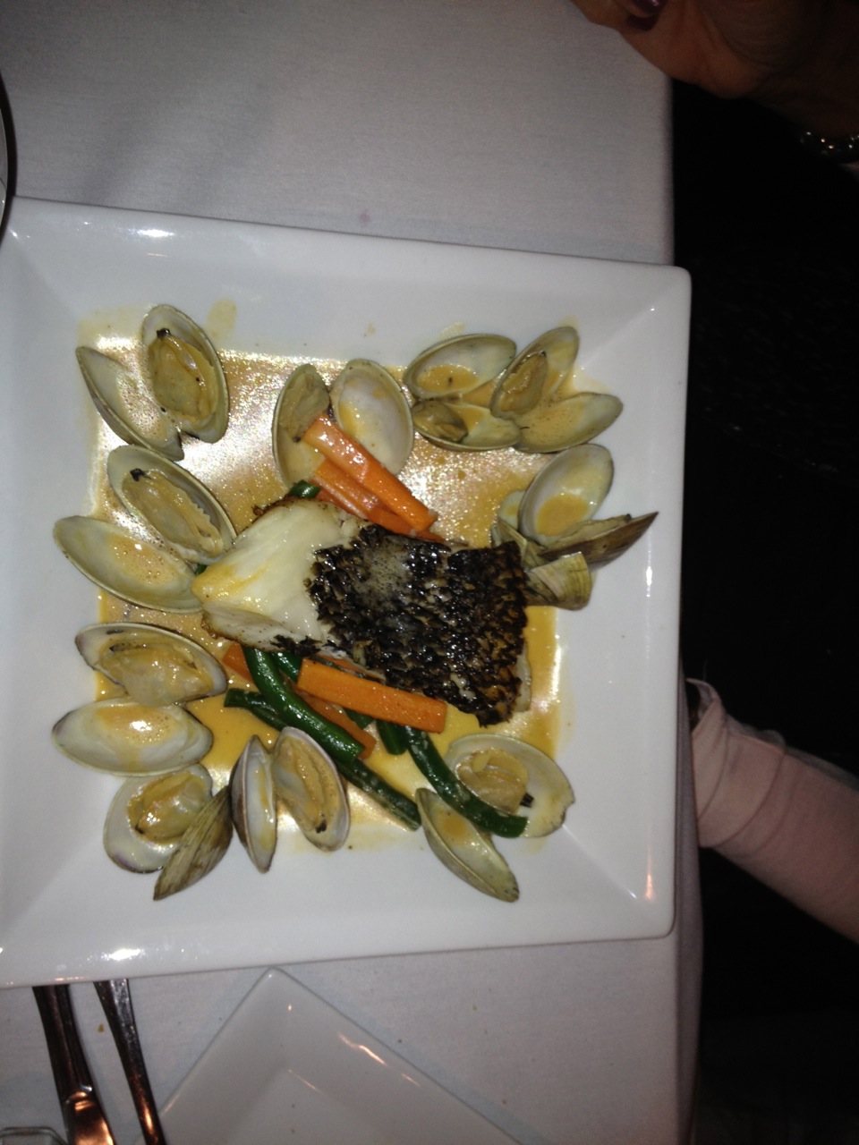 Greens are good for you. Eat them often! Next we enjoyed a couple of entrees, one being this salmon over various greens:
