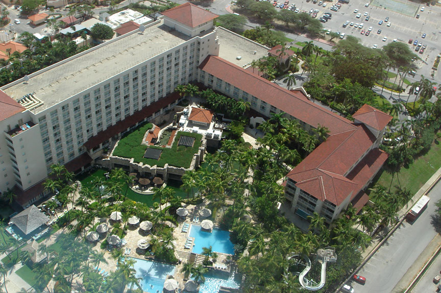 People ask me about hotels in Aruba, where they are, what the complexes are like, and so forth. There’s nothing better than an aerial photo to put it all in perspective. Here’s a look at the Hyatt Hotel as seen from above: