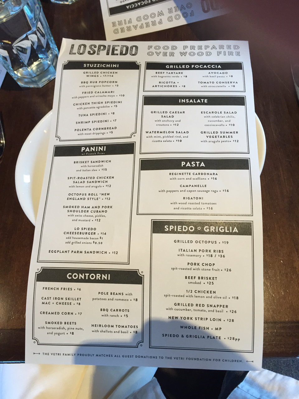 Menu at Lo Spiedo, Philadelphia.
