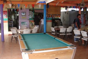 Up for a game? The locals play rounds here: winner continues on the table while the loser waits for his next chance. Just to give a brief orientation, here’s a look at the exterior from the road that fronts the place.