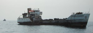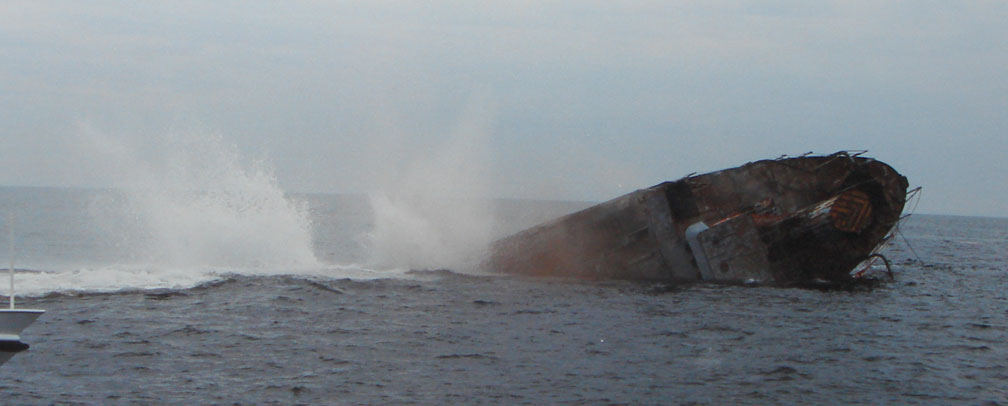 And here is the demise of an old yard oiler, off the coast of Manasquan Inlet, New Jersey, USA. The first photo below shows the ship at anchor. I’ve just opened a series of valves and removed plates in the hull to let water in.