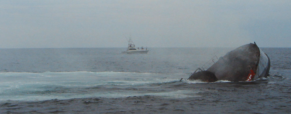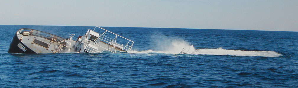 A local beer distributer helped pay for the cost of sinking this ship. Thus, the Budweiser sign. In the next photo the ship is well on its way to the bottom.