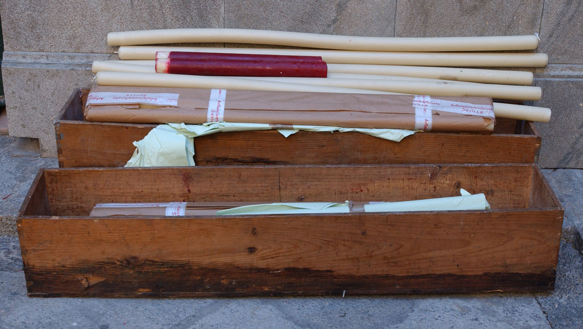I’ve always enjoyed visiting old churches be they big or small. Of course a cathedral is the epitome of the form and I’ve visited them in England, France, Spain, and the United States. Talk about atmosphere, these places are loaded with it. For example, while in Seville, Spain, I spotted this delivery of candles.