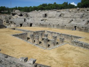 Not far from Sevilla, Spain, are the ruins of the Roman city Italica. The site remains under excavation as there is plenty more to discover. It is an amazing place to visit, especially when you consider that this place was a long journey from Rome during the days of the Empire. In this first photo, you’ll see a piece of the amphitheater.