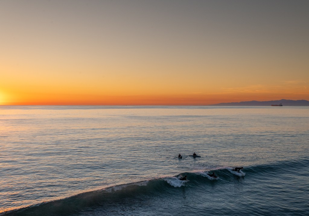 Catching the last little wave at the end of the day. Manhattan Beach, California, USA