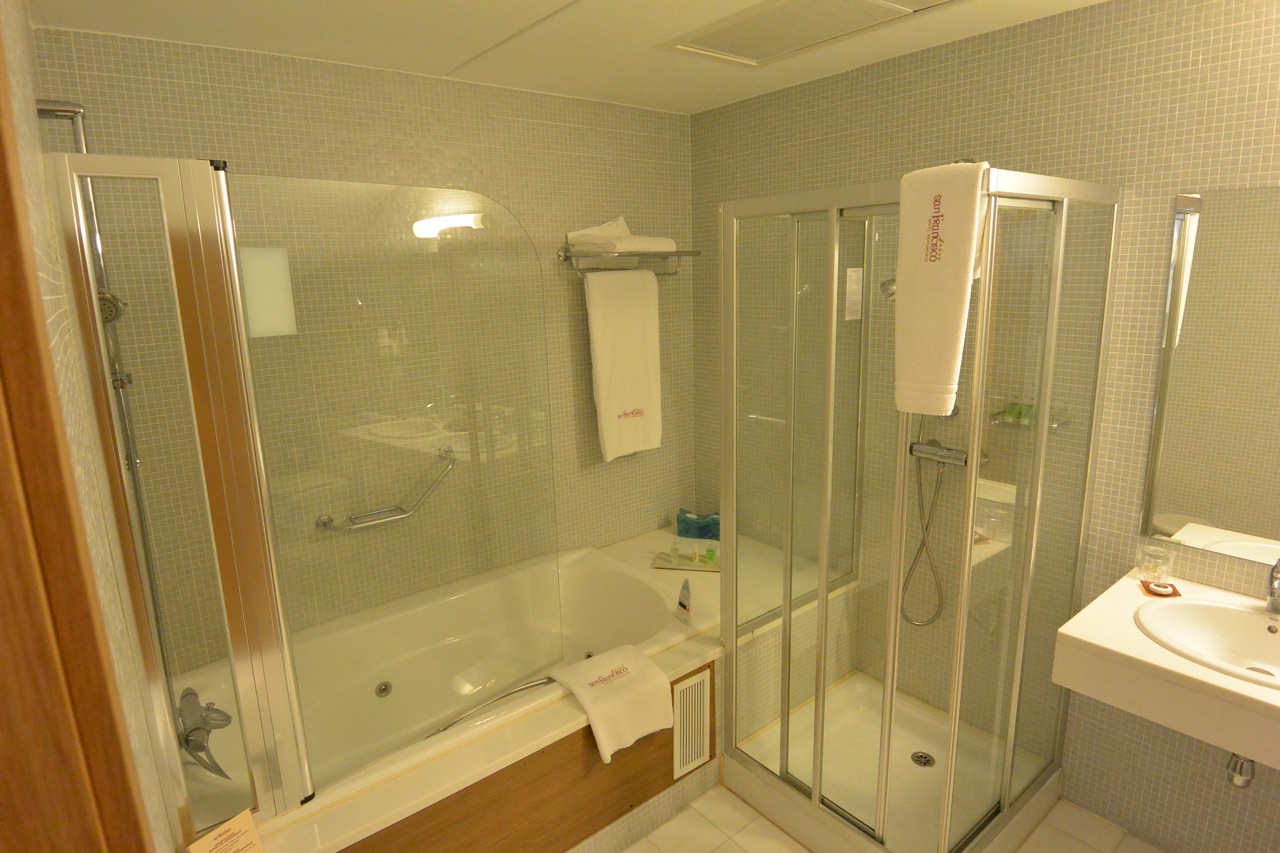There’s wasn’t much of view because the windows were actually more like skylights. But no worries because I spend very little time in the room, which was comfortable in every other way. The bathroom was spacious: