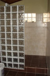 This place sells tons of beautiful items. Their selection is quite modern but not over the top. They also have qualified staff to help with making your selections. There are other places on the island and in later posts I’ll get to them. So, I took the closet and installed a glass block wall for the shower area as shown here.